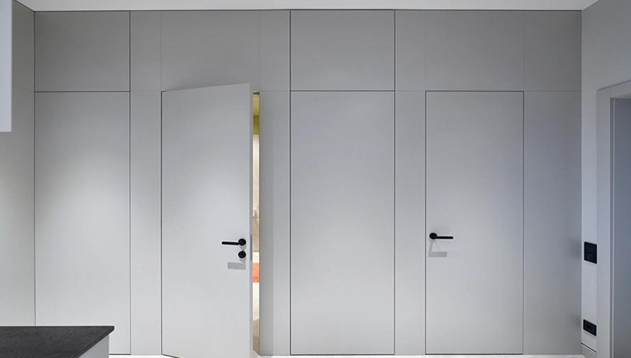 Двери Invisible являются одним из самых выразительных трендов настоящего времени. У скрытых дверей нет наличников и традиционной коробки. Такая конструкция не занимает место на стенах и визуально расширяет пространство. Дверь-невидимка сливается с обстановкой и становится незаметной, но при этом функциональной частью интерьера.